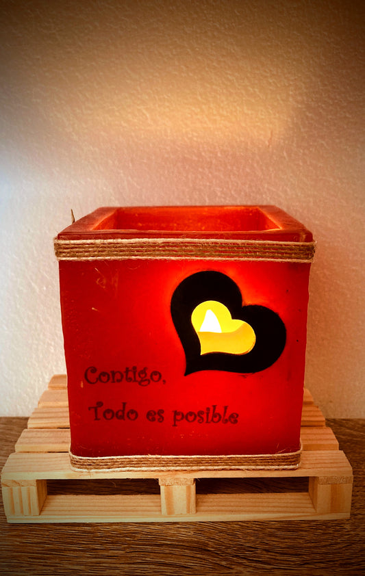 Vela Fanal/vela hueca Cuadrada Lilinnight Roja con Diseño de Corazón y Mensaje Inspirador- LilinnightPrecio habitual €12,00 EURPrecio habitualPrecio unitario / por€15,00 EURPrecio de oferta €12,00 EUROferta