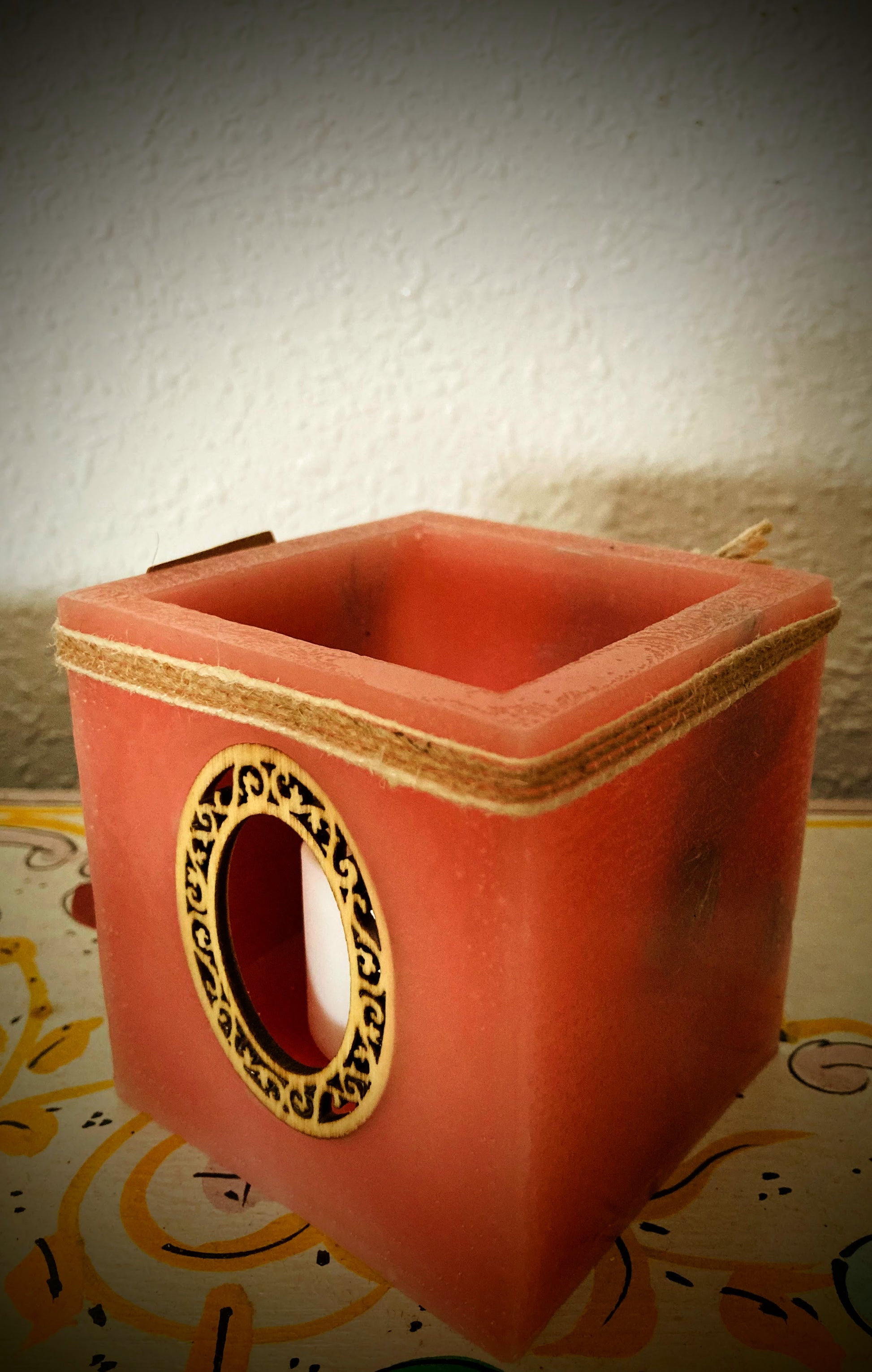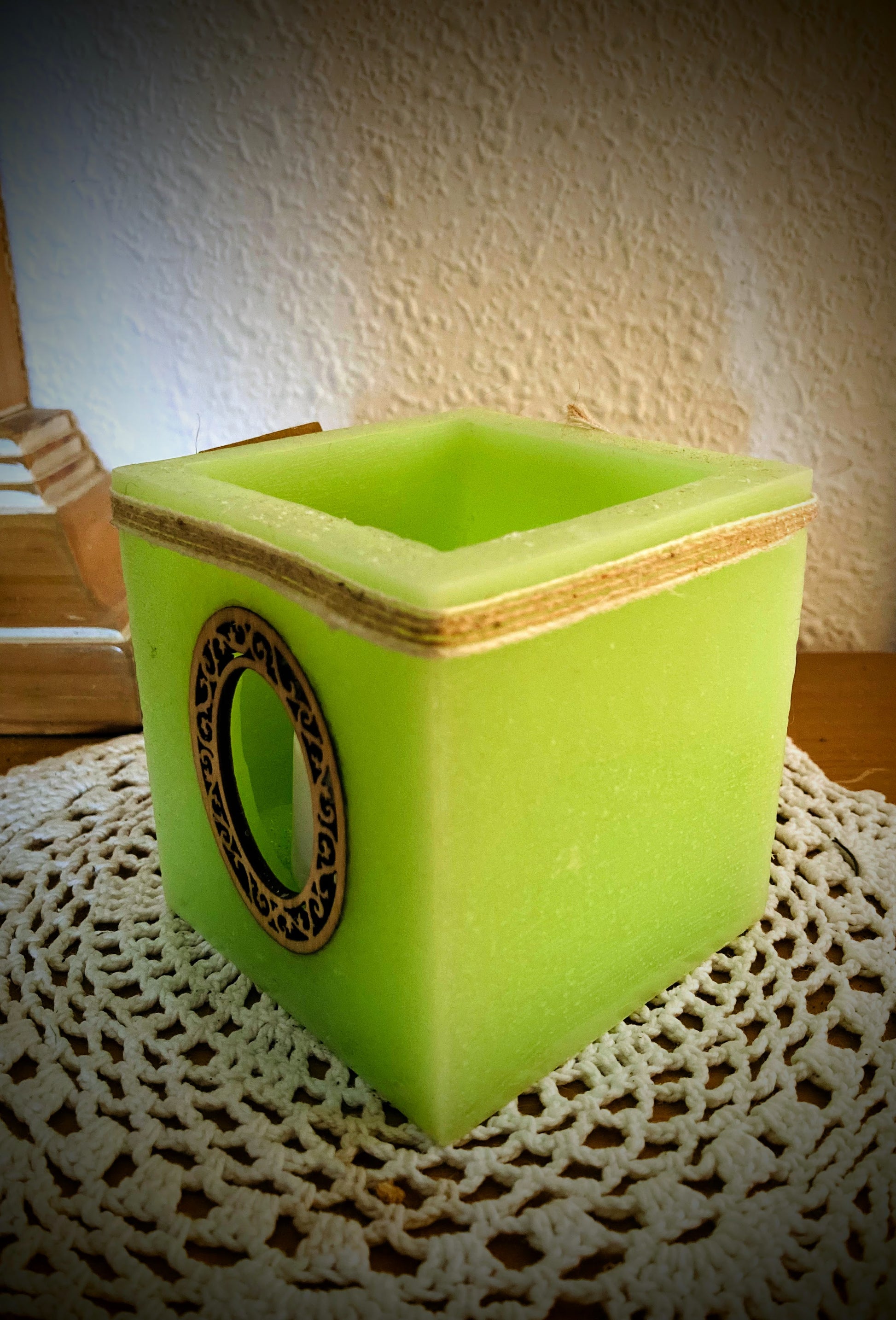 Fanal de cera/ vela hueca con aplique de madera en forma de espejo y aroma floral - Lilinnight