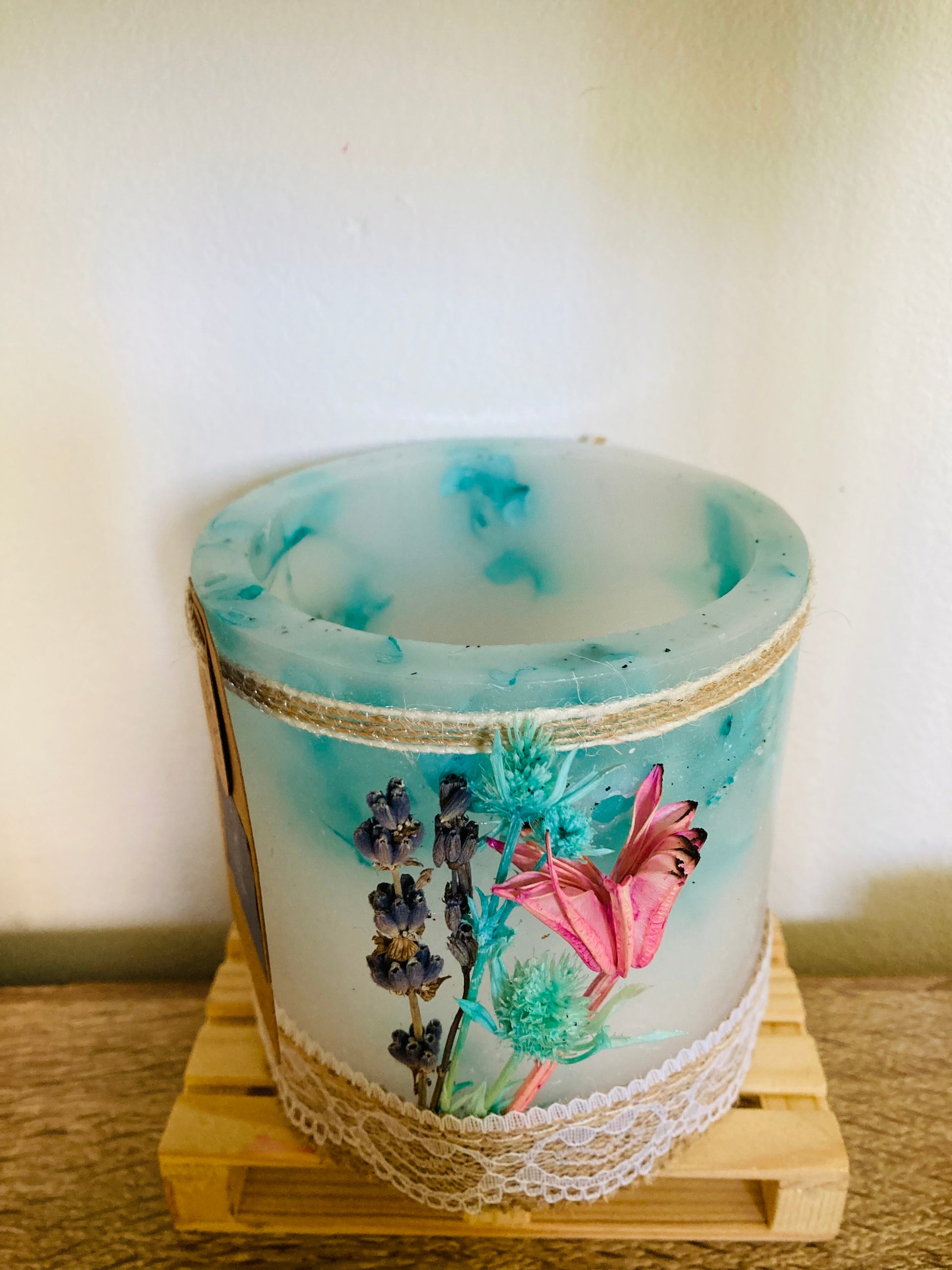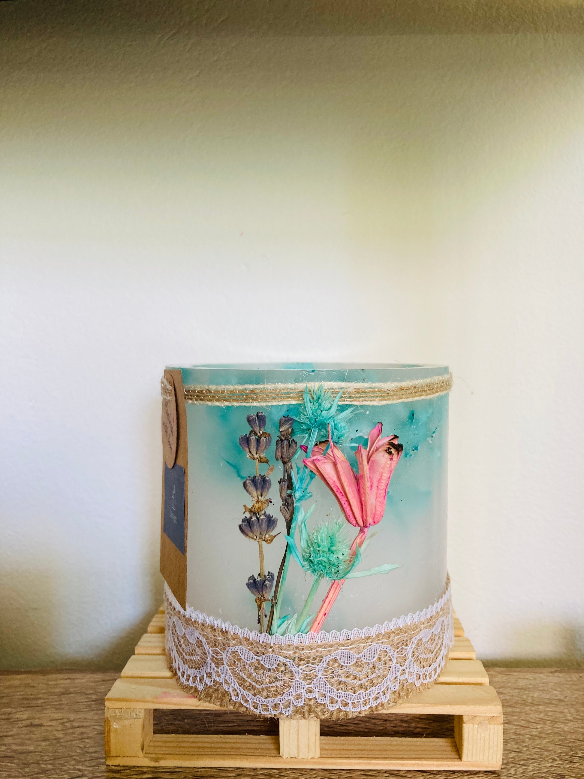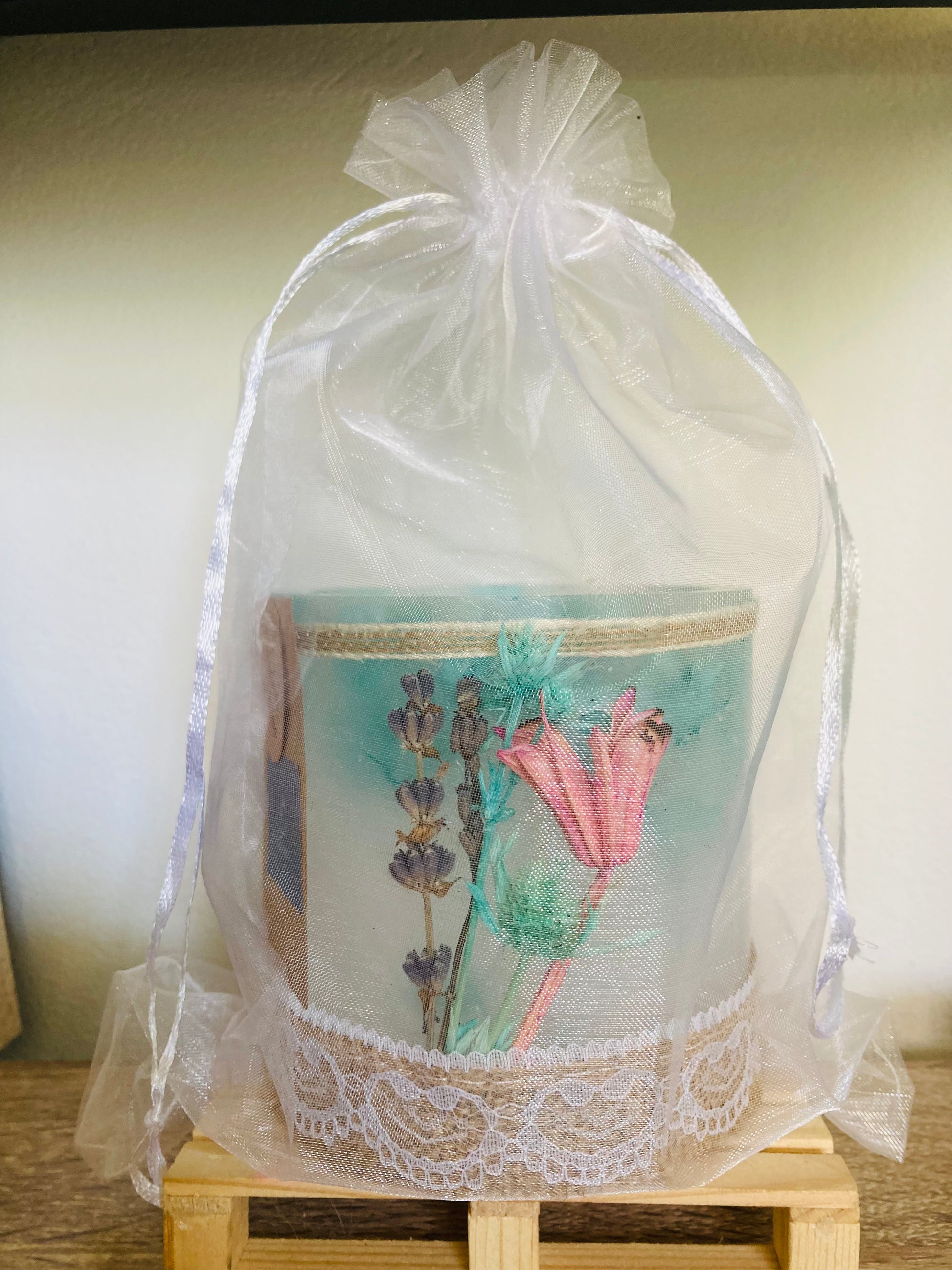 - decoración: flores secas y cinta decorativa.Accesorios incluidos : vela led y bolsita para regalar.