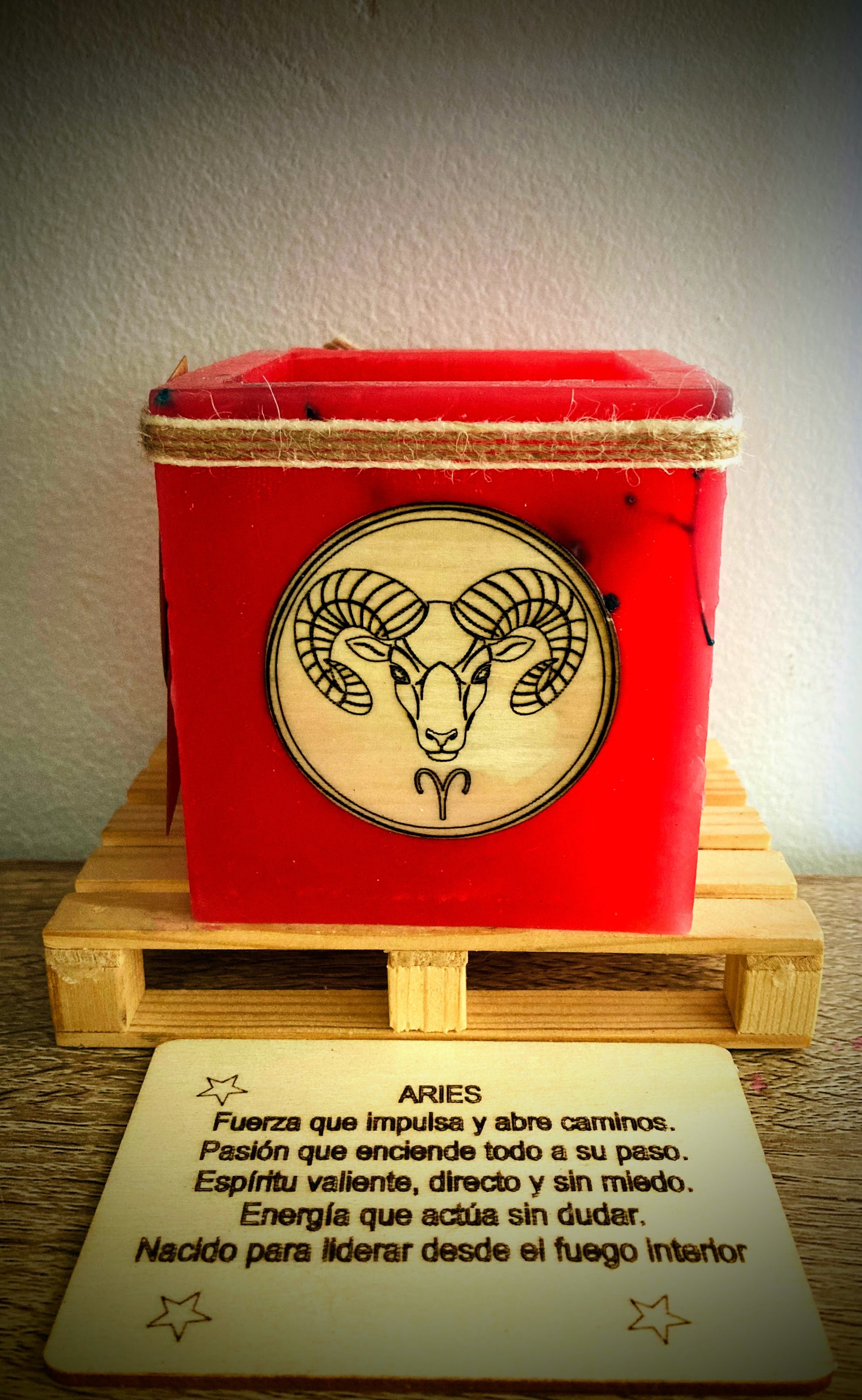 Fanal hueco artesanal diseñado especialmente para el signo zodiacal Aries. Elaborado en un elegante tono rojo y perfumado con una fragancia intensa a frutos rojos, este fanal representa la pasión, el coraje y el fuego interior característicos de este signo.