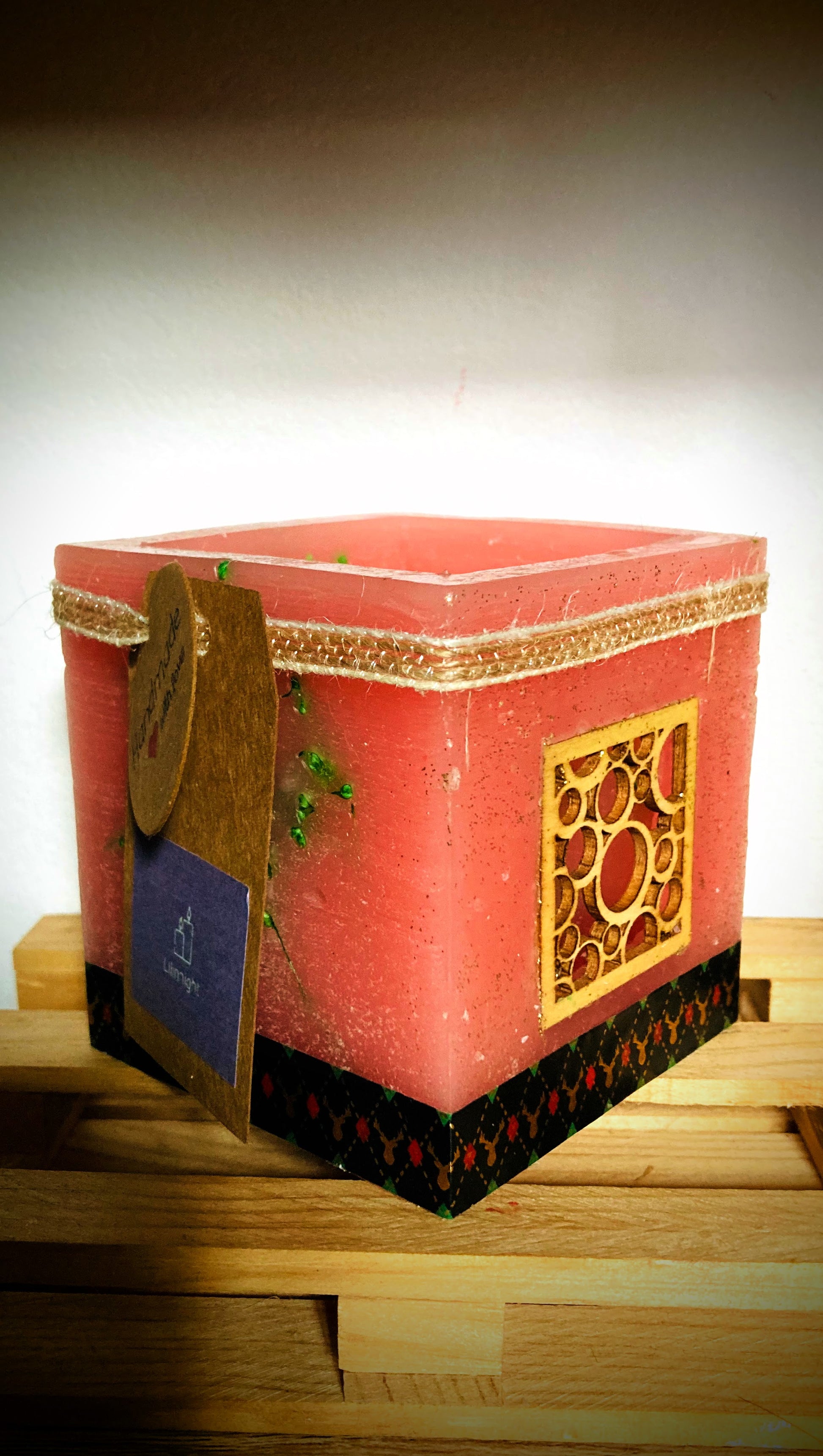 Fanal de cera /vela hueca navidad con olor a rosas - Lilinnight