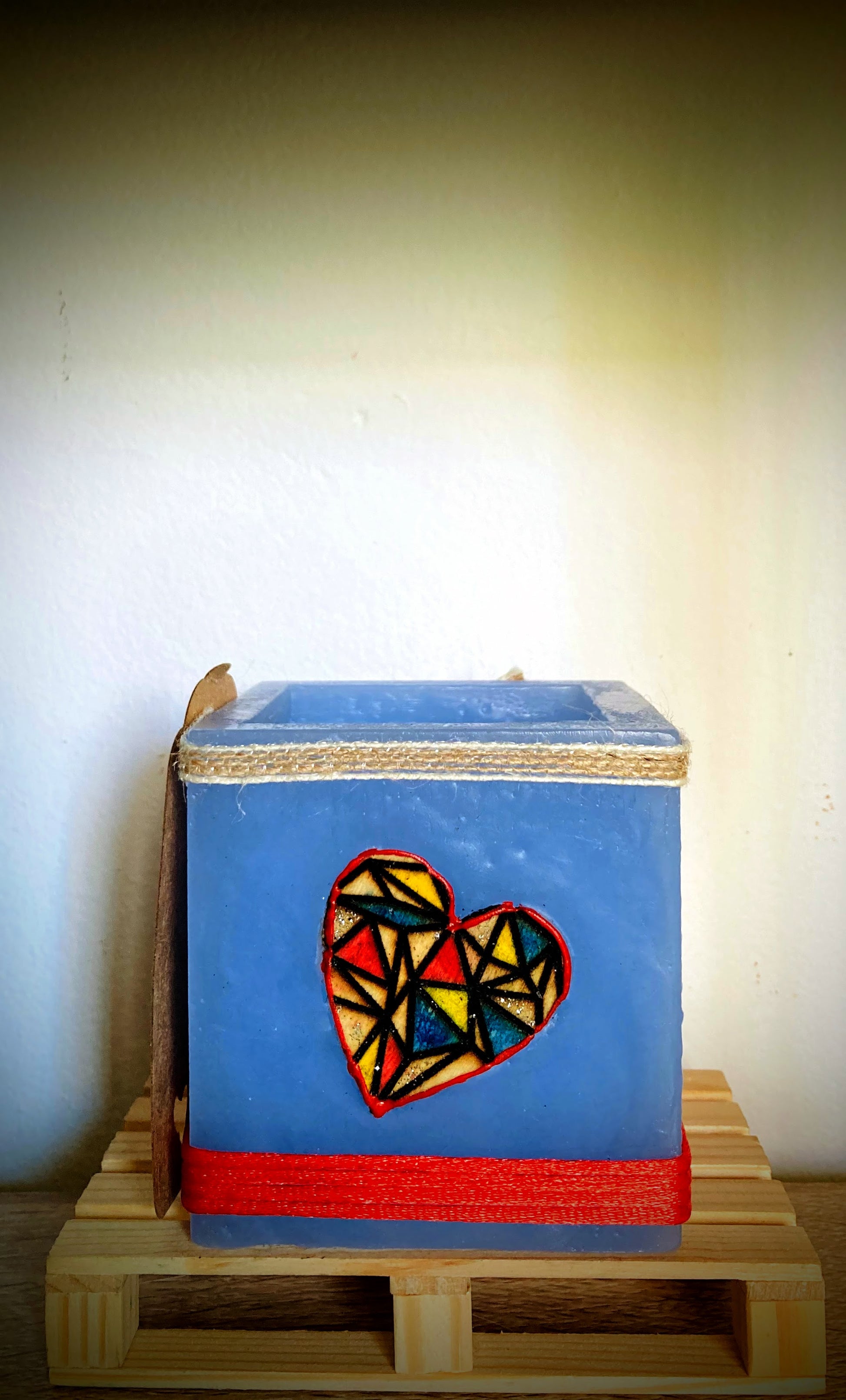 Descubre la belleza y elegancia de nuestro fanal de cera azul, diseñado para iluminar tus espacios con un suave aroma floral. Este encantador fanal cuenta con un delicado aplique de madera en forma de corazón, grabado y pintado a mano, que añade un toque personalizado y cálido. Ideal para crear un ambiente acogedor, este fanal es perfecto para usar con una vela de té. Recuerde que, para mayor estabilidad y seguridad, es importante colocar sal gorda o arena en la base del fanal.