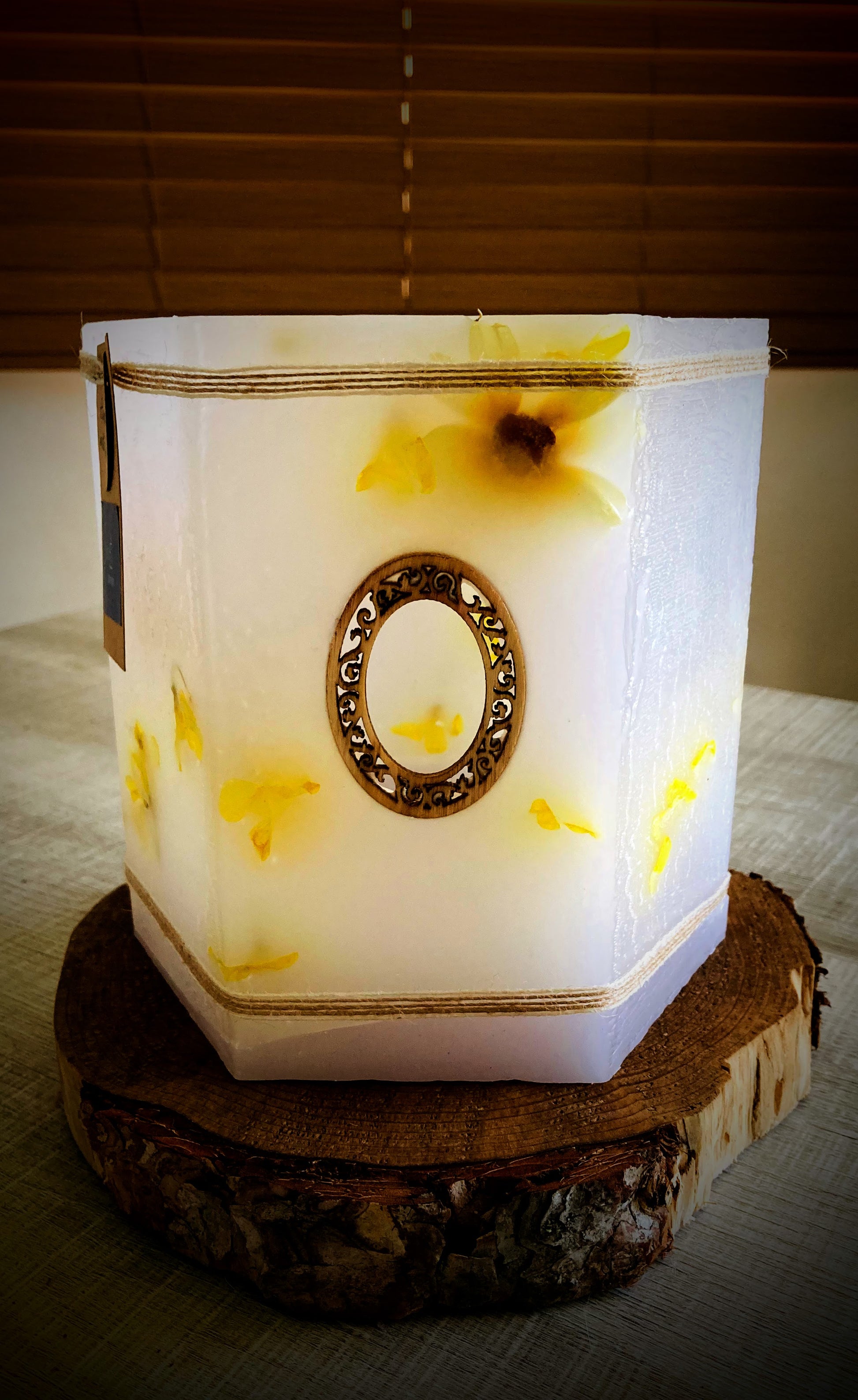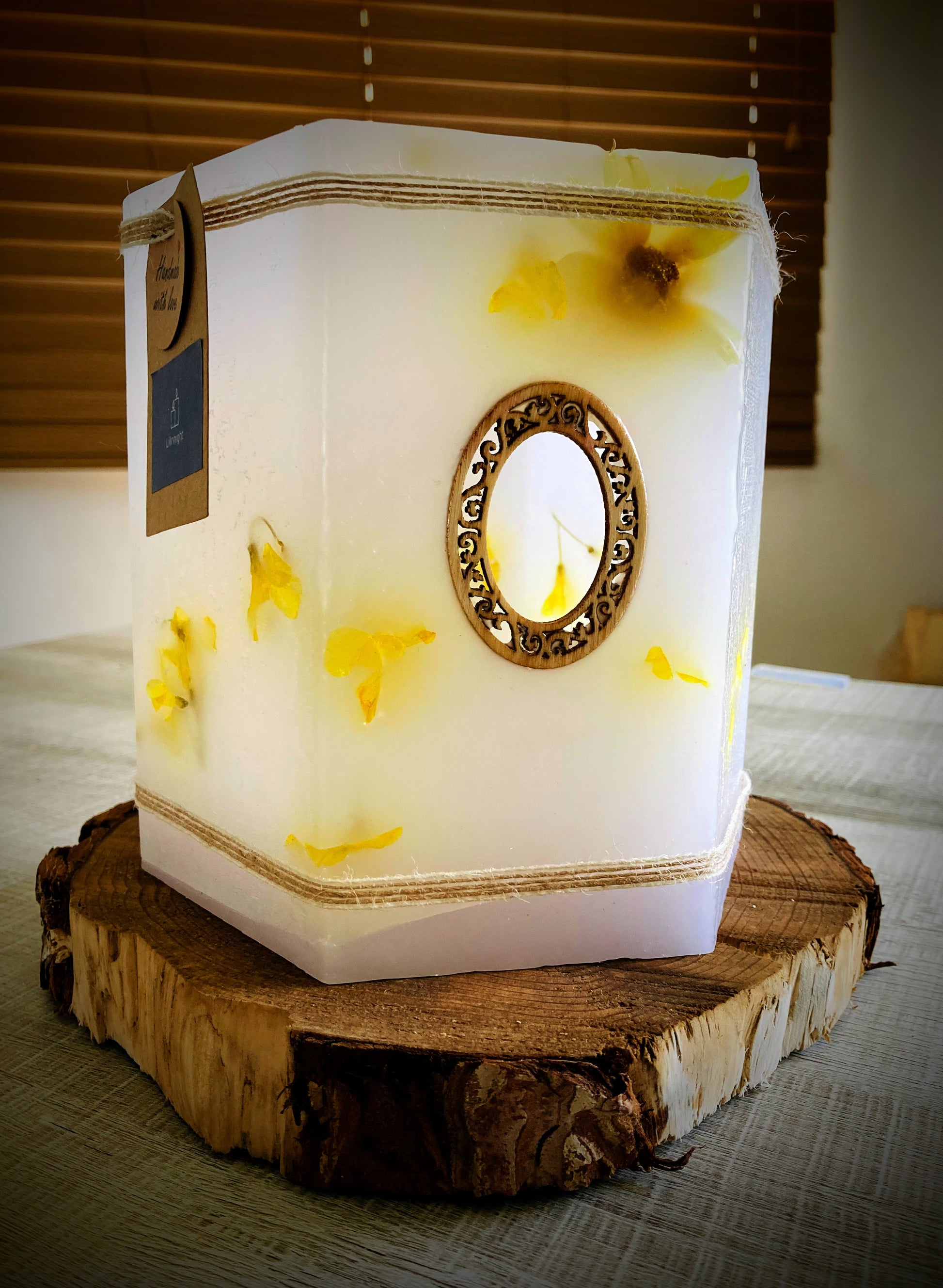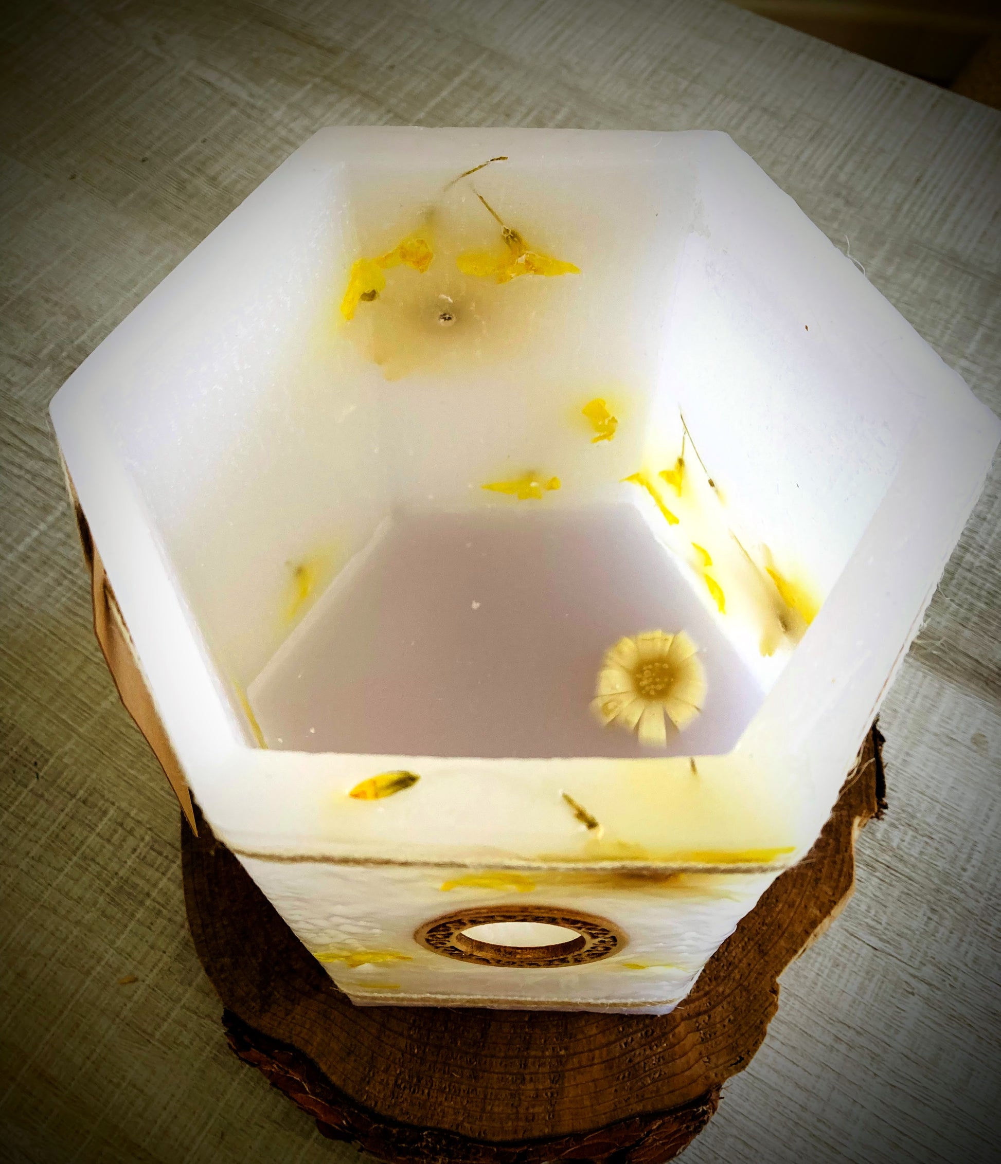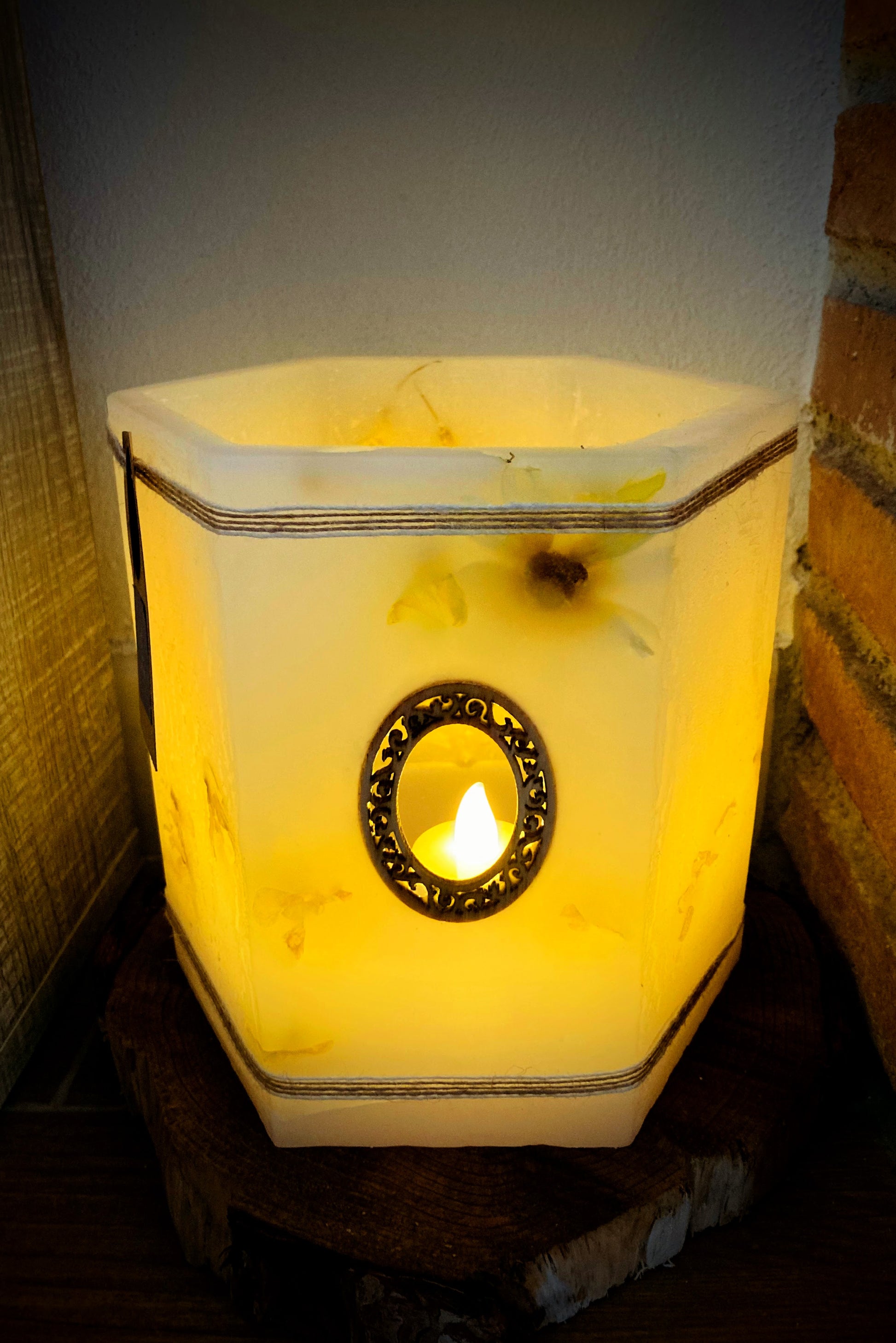 Fanal Hexagonal de Cera / vela hueca con Flores Naturales – Estilo Rústico con olor Floral - Lilinnight