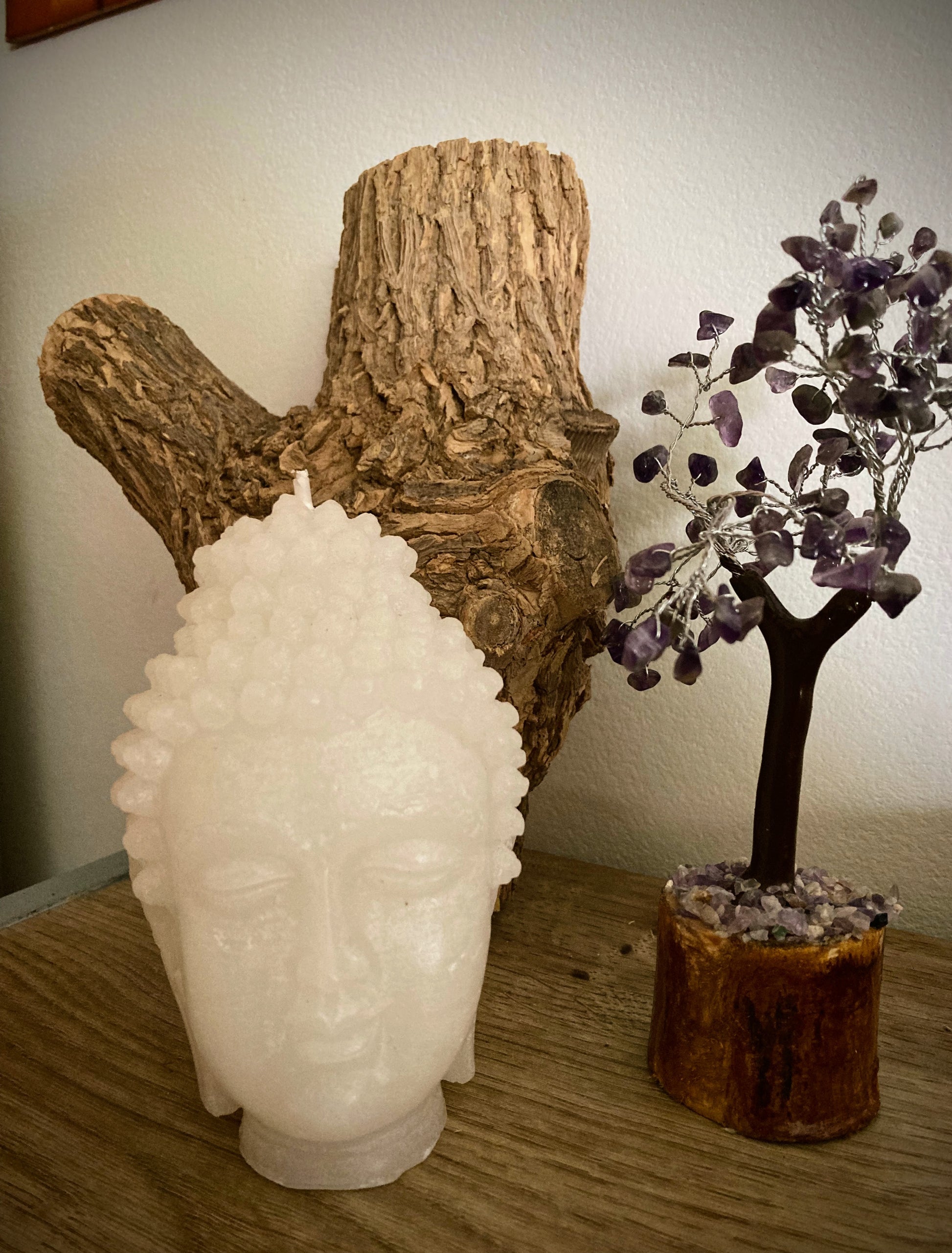 Una pieza llena de calma, belleza y significado. Esta vela artesanal en forma de cabeza de Buda es perfecta para crear un ambiente de paz y armonía en cualquier rincón de tu hogar. Disponible en varios colores (blanco, morado, amarillo, azul y más bajo pedido), está elaborada con cera de alta calidad y perfumada con delicadas esencias florales. Si buscas un aroma diferente, ¡puedes consultarnos y personalizarlo a tu gusto!