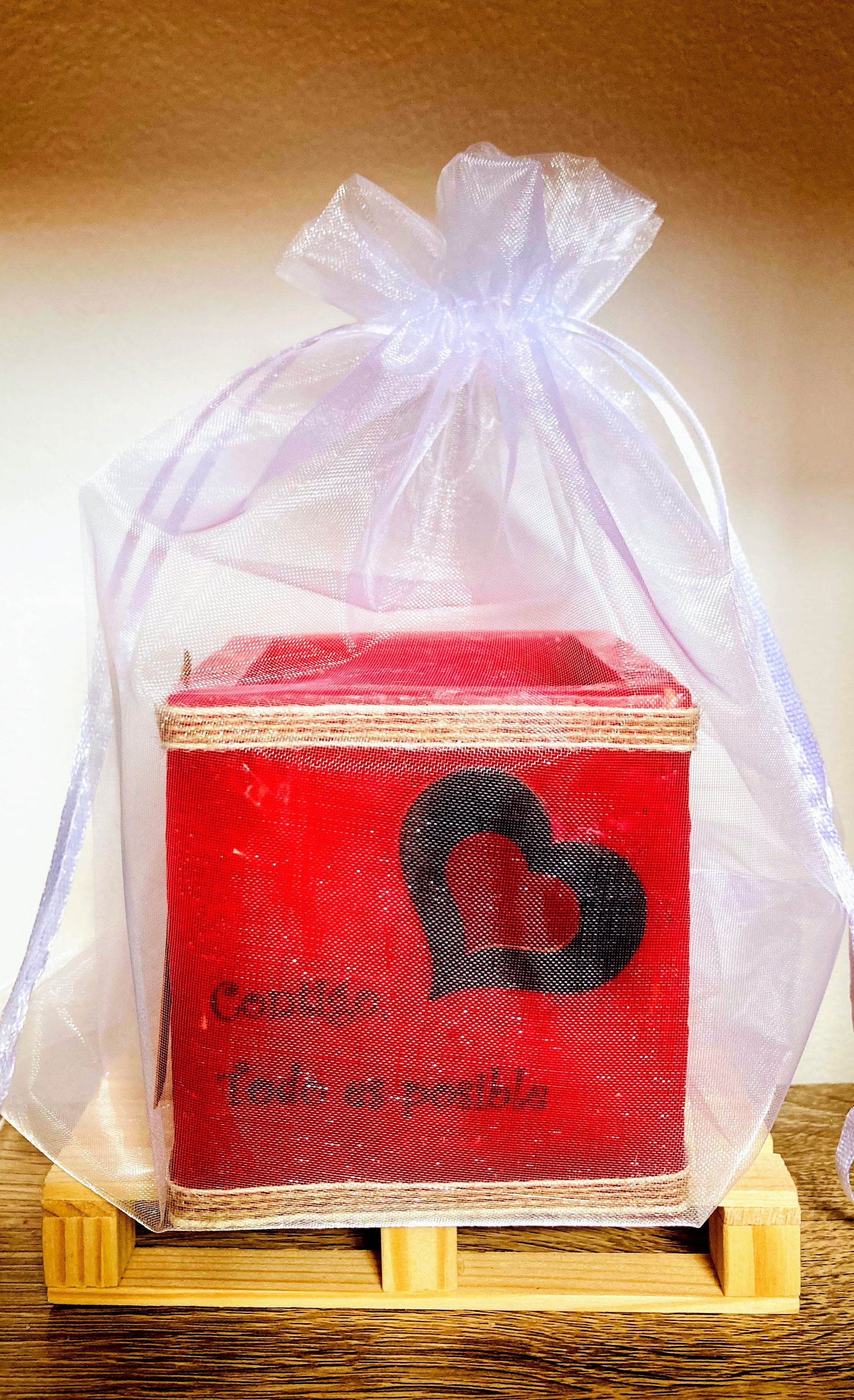 Vela Fanal/vela hueca Cuadrada Lilinnight Roja con Diseño de Corazón y Mensaje Inspirador- Lilinnight