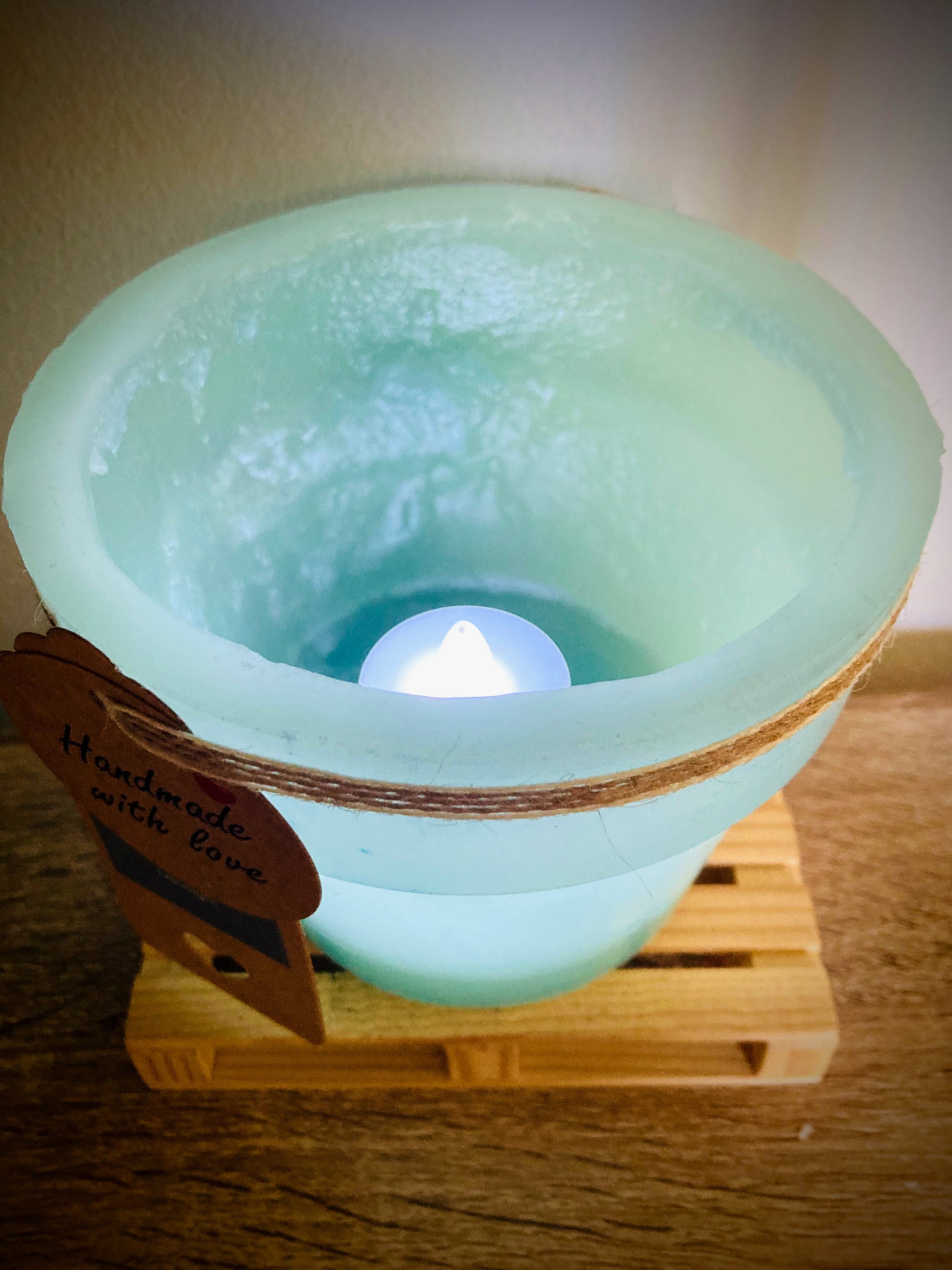 Vela hueca, fanal de cera artesanal con forma de maceta – Lilinnight
